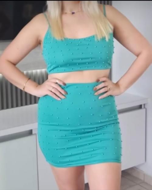 AJUSTADO AL CUERPO CON DECORACION DE PERLAS EN LA MISMA TONALIDAD .